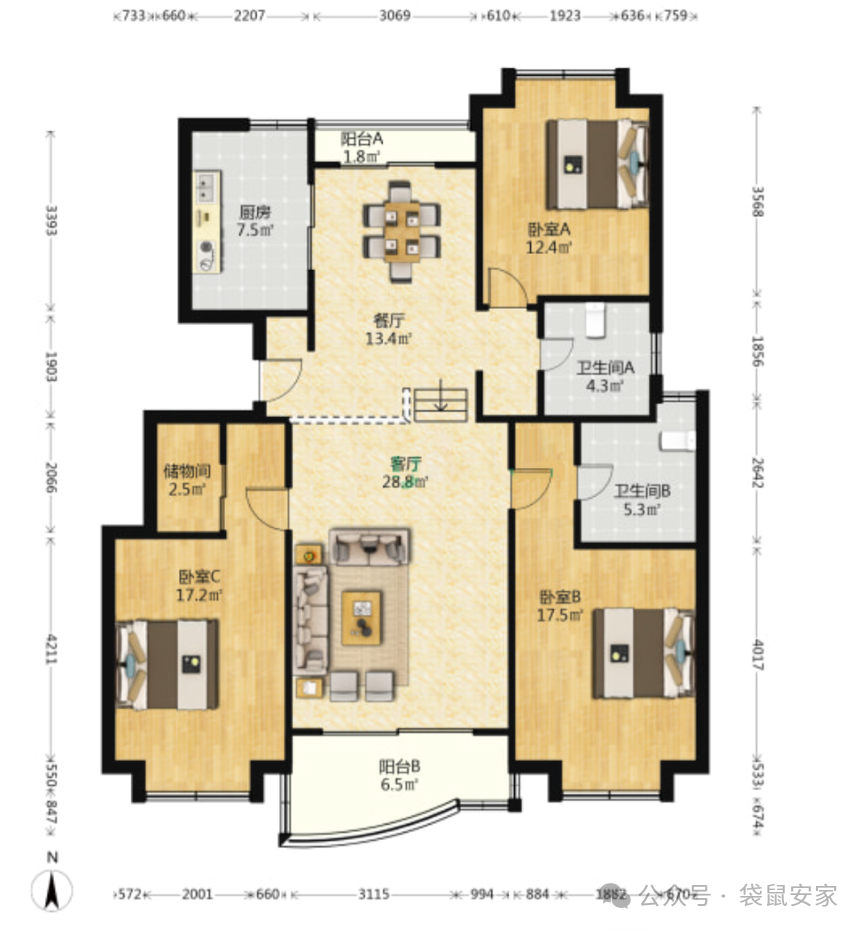 • 户型介绍:错层大三房。